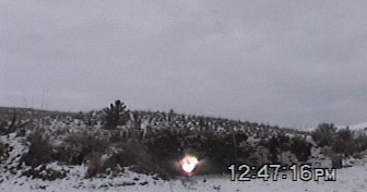 January 19th, 2003Wanting to get a high resolution picture of a fireball I took my daughter Kim and her cousin Lacey out for some tests. Kim ran the rifle, the video camera was on a tripod, and I had the still camera. Lacey provided the additional sound effects.
